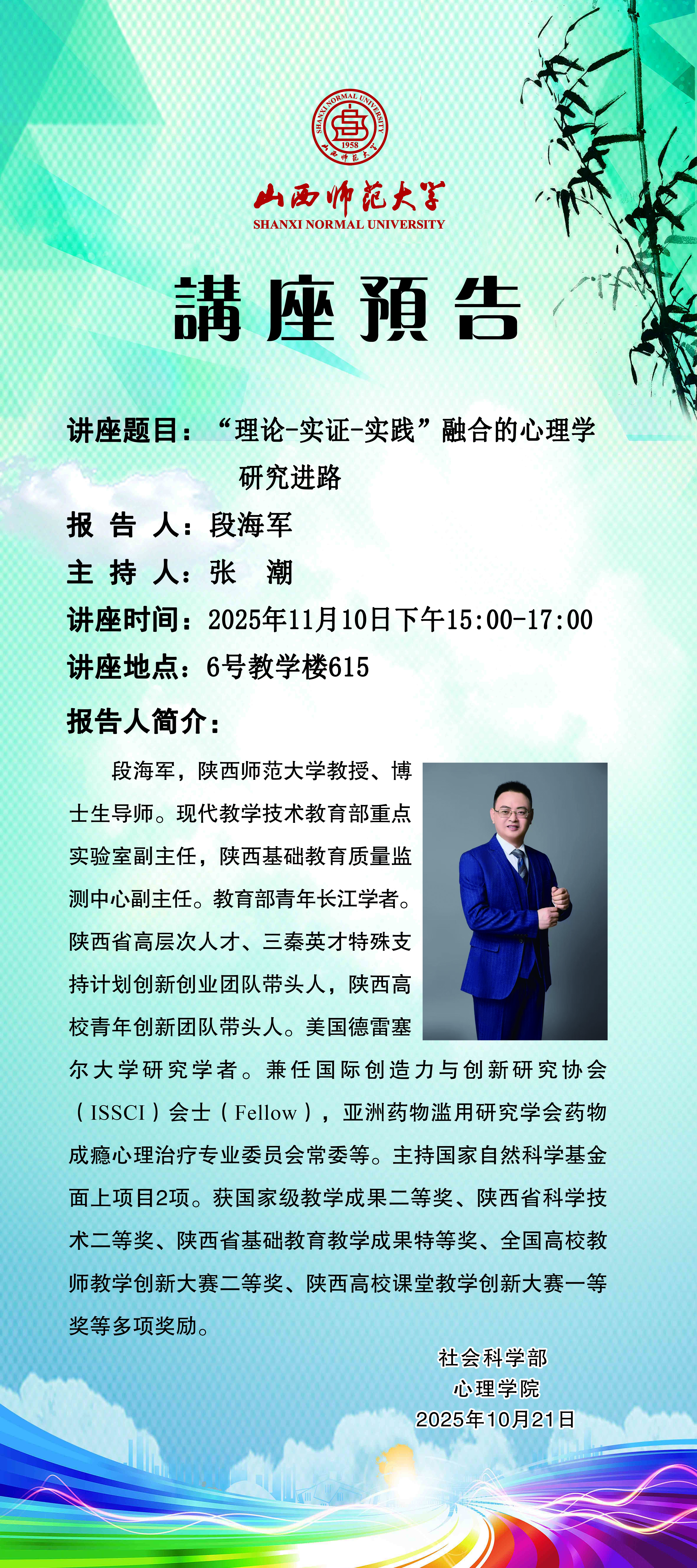 【讲座预告】“理论-实证-实践”融合的心理学研究进路