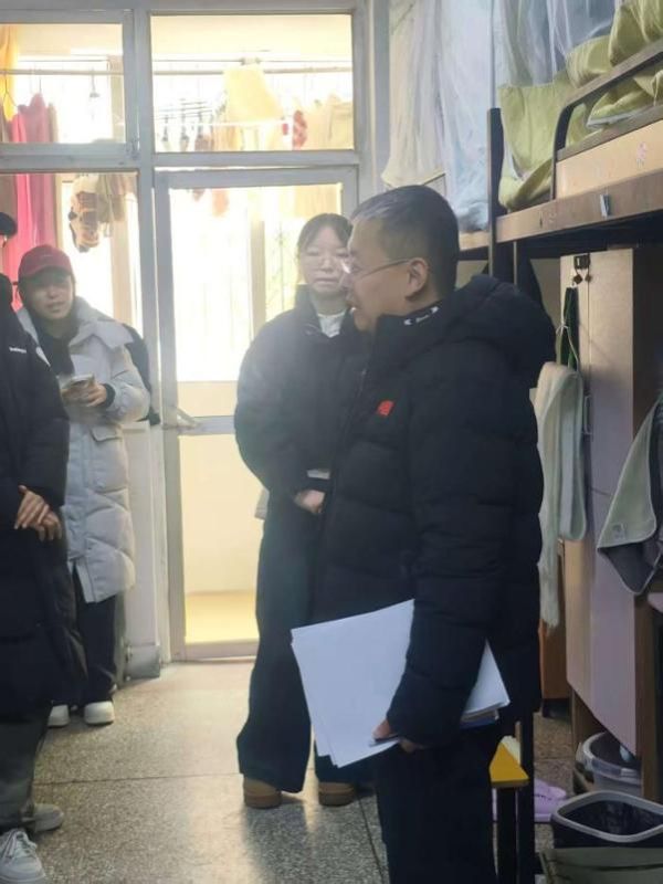 会后,白校长在辅导员王美艳和社区相关负责人陪同下,走访了南区1号楼学生宿舍。他仔细检查了门窗、暖气及用电设施,叮嘱同学们严守安全规范,共同营造温馨和谐的居住环境。同学们表示将牢记嘱托,勤学笃行,以实际行动落实全会精神。